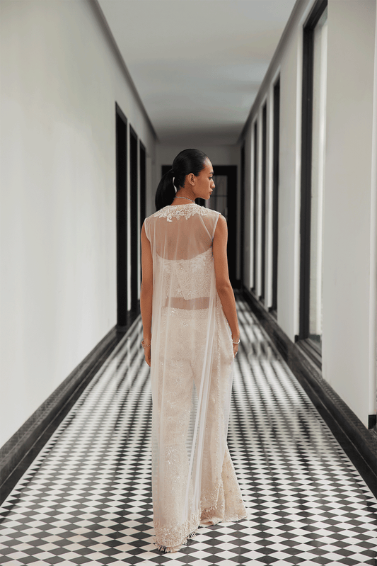 IVORY DRAPE SAREE WITH A CORSET BLOUSE