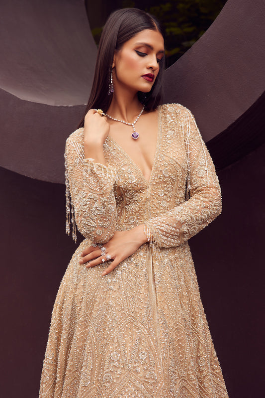 EMBROIDERED PANT - BUSTIER SET WITH ORGANZA LONG JACKET
