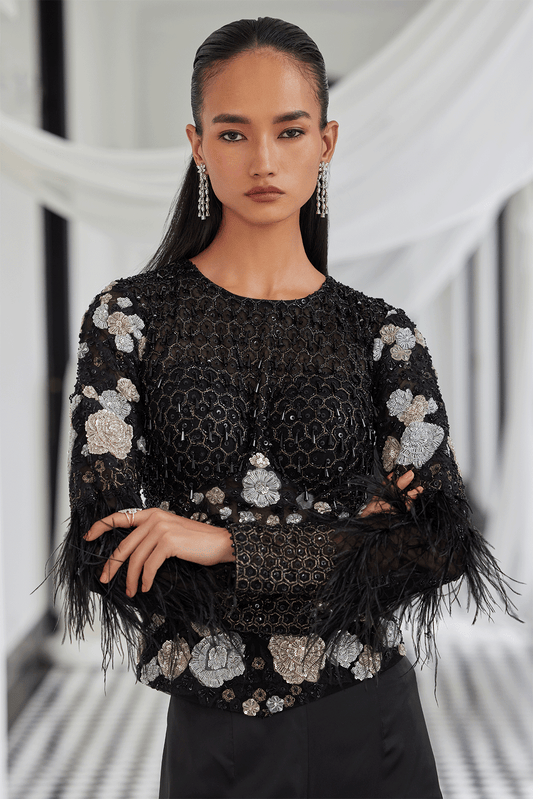 BLACK PATCHWORK TOP WITH SATIN PANTS