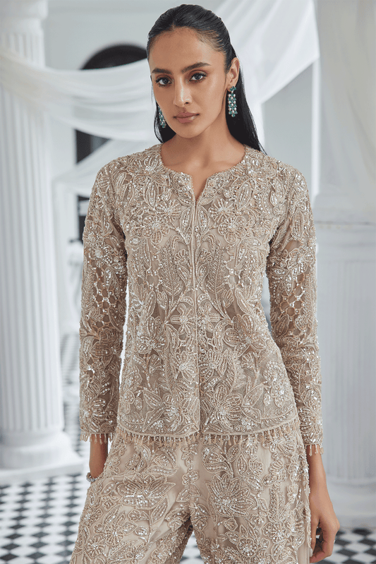 BEIGE EMBROIDRED INDO-WESTERN SET