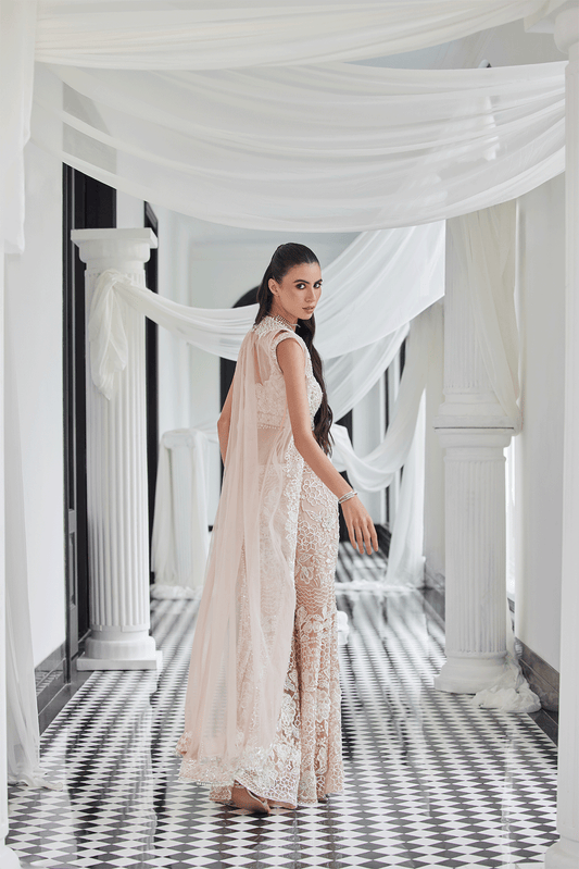 IVORY COCKTAIL SAREE WITH A SHOULDER CAPE