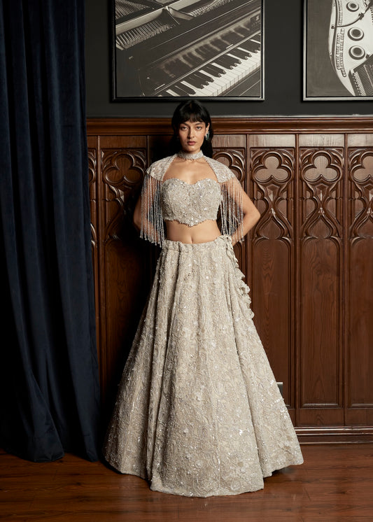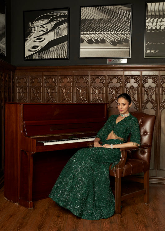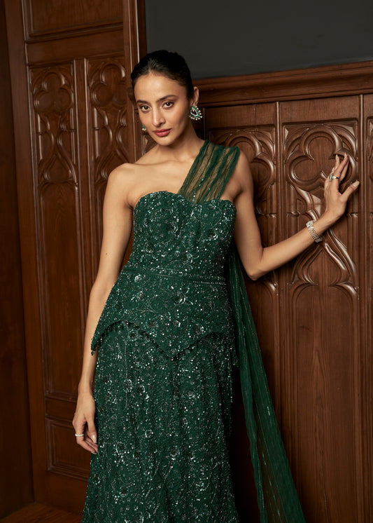 EMERLAD FISHCUT LEHENGA WITH CORSET BLOUSE