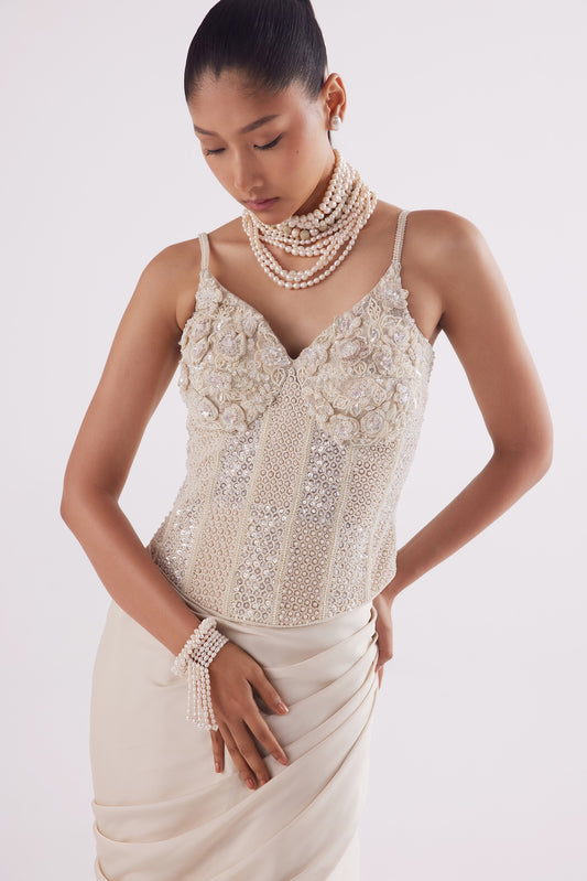 IVORY CORSET TOP WITH DRAPED SKIRT