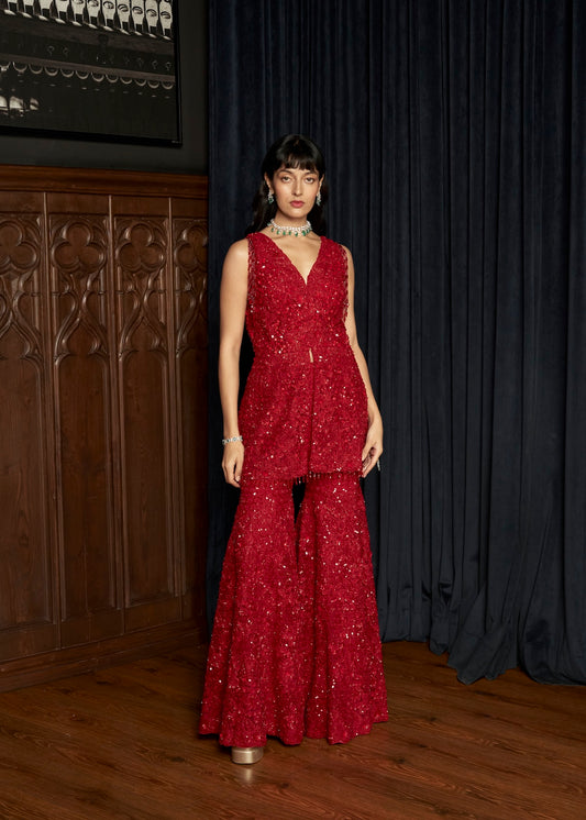 EMERALD INDOWESTERN TOP-SKIRT SET