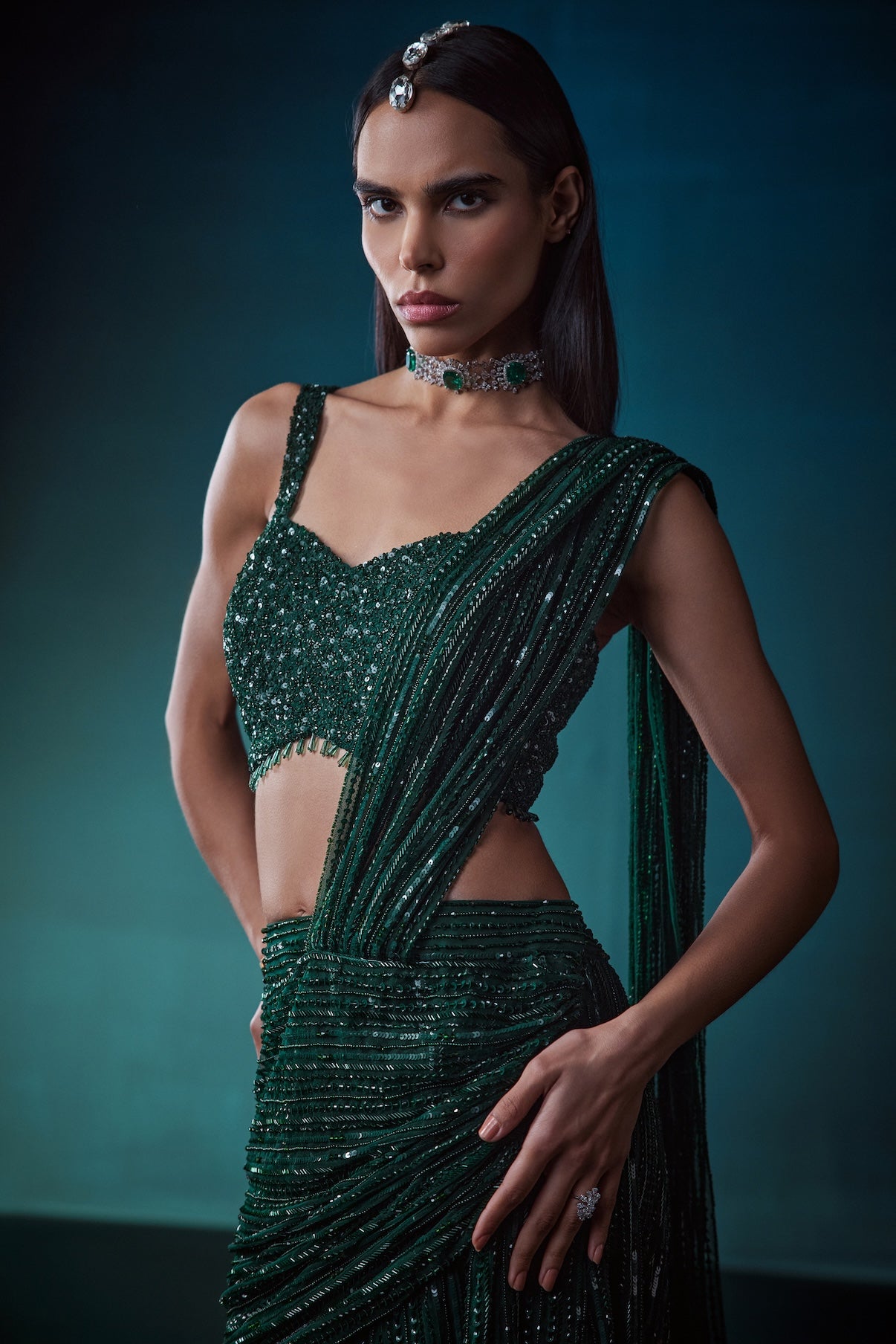 EMERALD DRAPE SAREE WITH A SLIT SKIRT